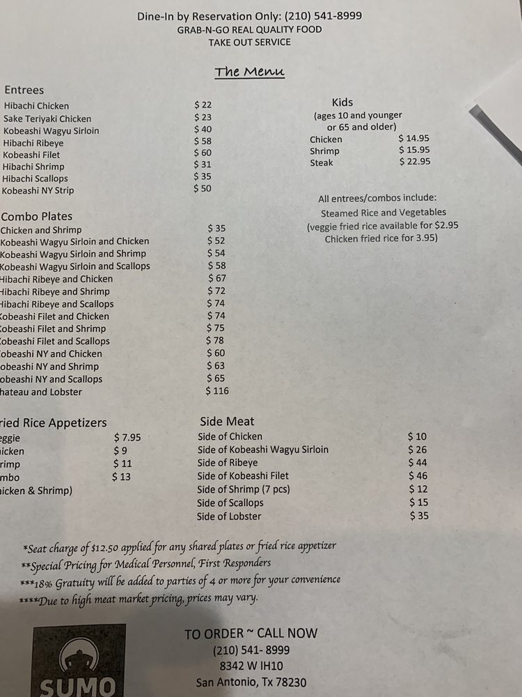 Sumo Japanese Steakhouse San Antonio Menu (Update 2025)